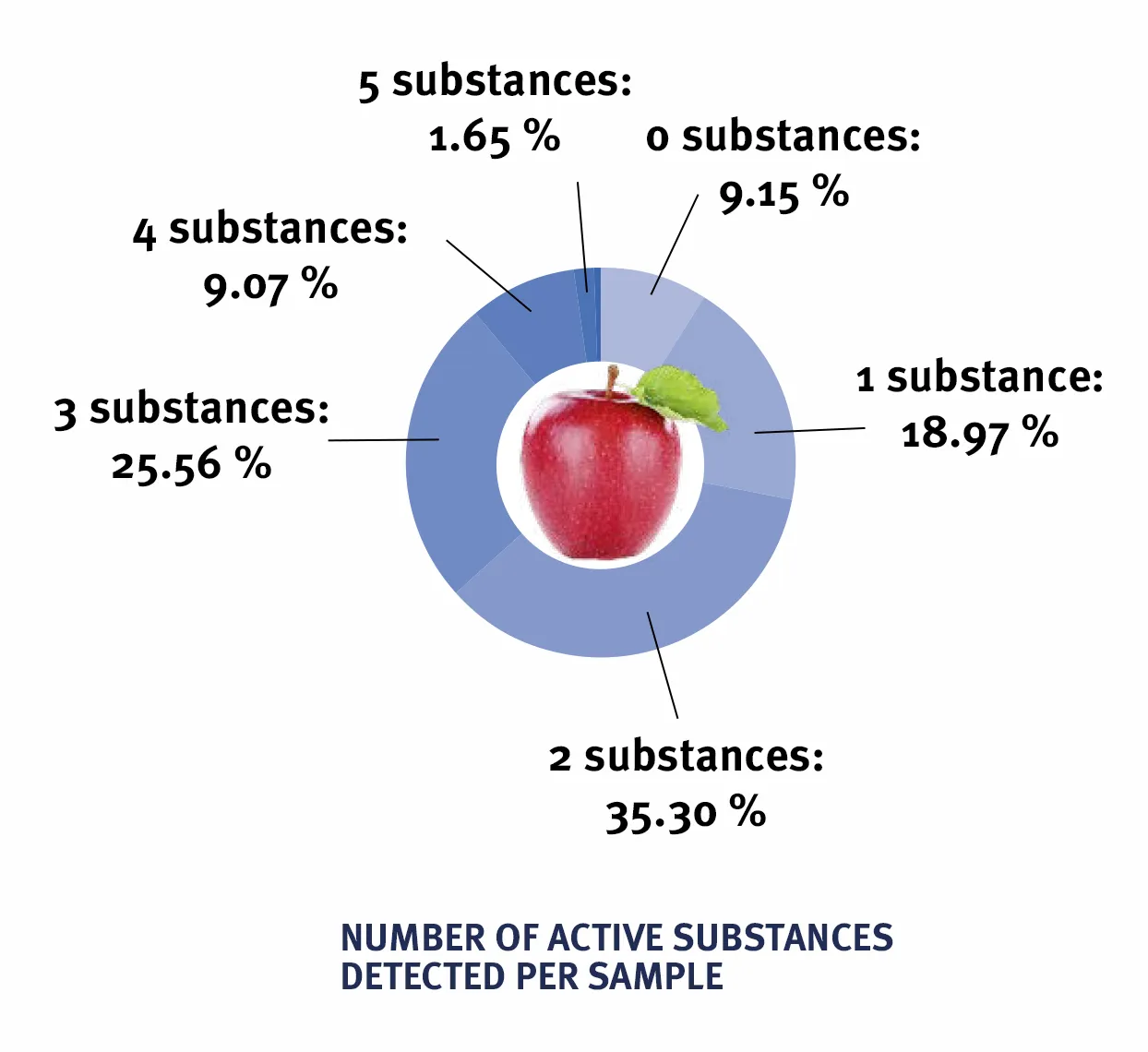 Äpfel: Anteil der nachgewiesenen Wirkstoffe pro Probe