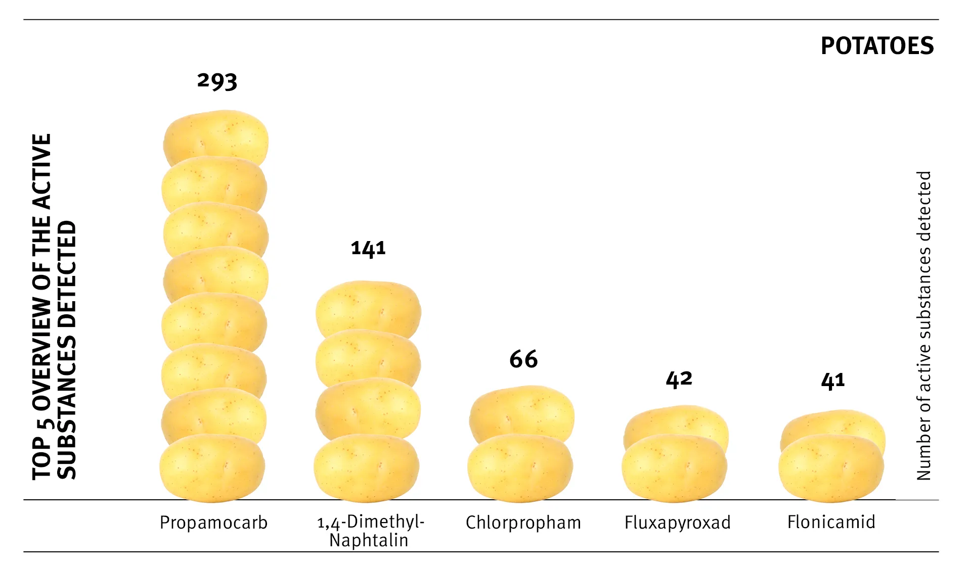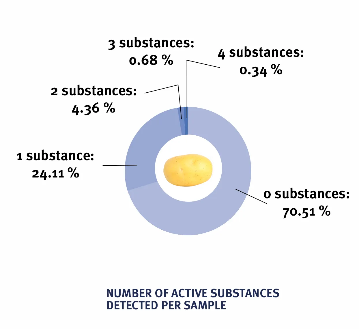 Kartoffeln: Anteil der nachgewiesenen Wirkstoffe pro Probe