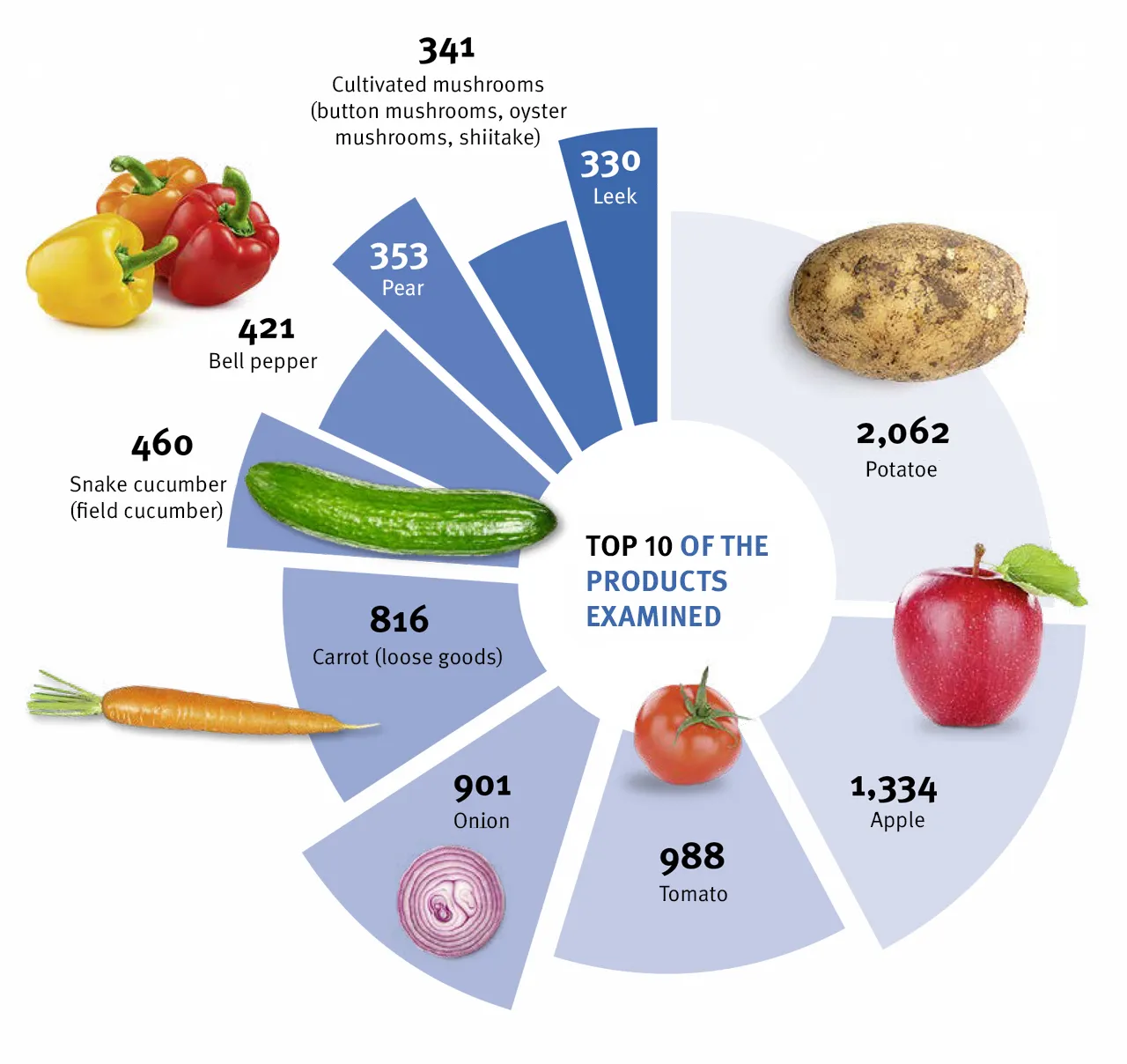 - Proben mit Mehrfachrückständen: 10,93 % der Proben