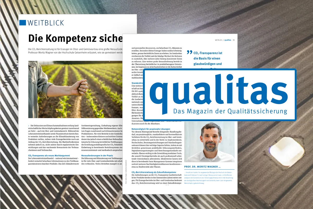 Im aktuellen WEITBLICK der qualitas erklärt Prof. Moritz Wagner von der Hochschule Geisenheim, warum die Klimabilanzierung für Erzeugerbetriebe im Obst- und Gemüsebereich zur Herausforderung wird. Während Handel und Finanzwelt bereits konkrete Anforderungen stellen, stehen viele Betriebe erst am Anfang. Regulatorische Vorgaben und das steigende Umweltbewusstsein der Verbraucher erhöhen den Druck.