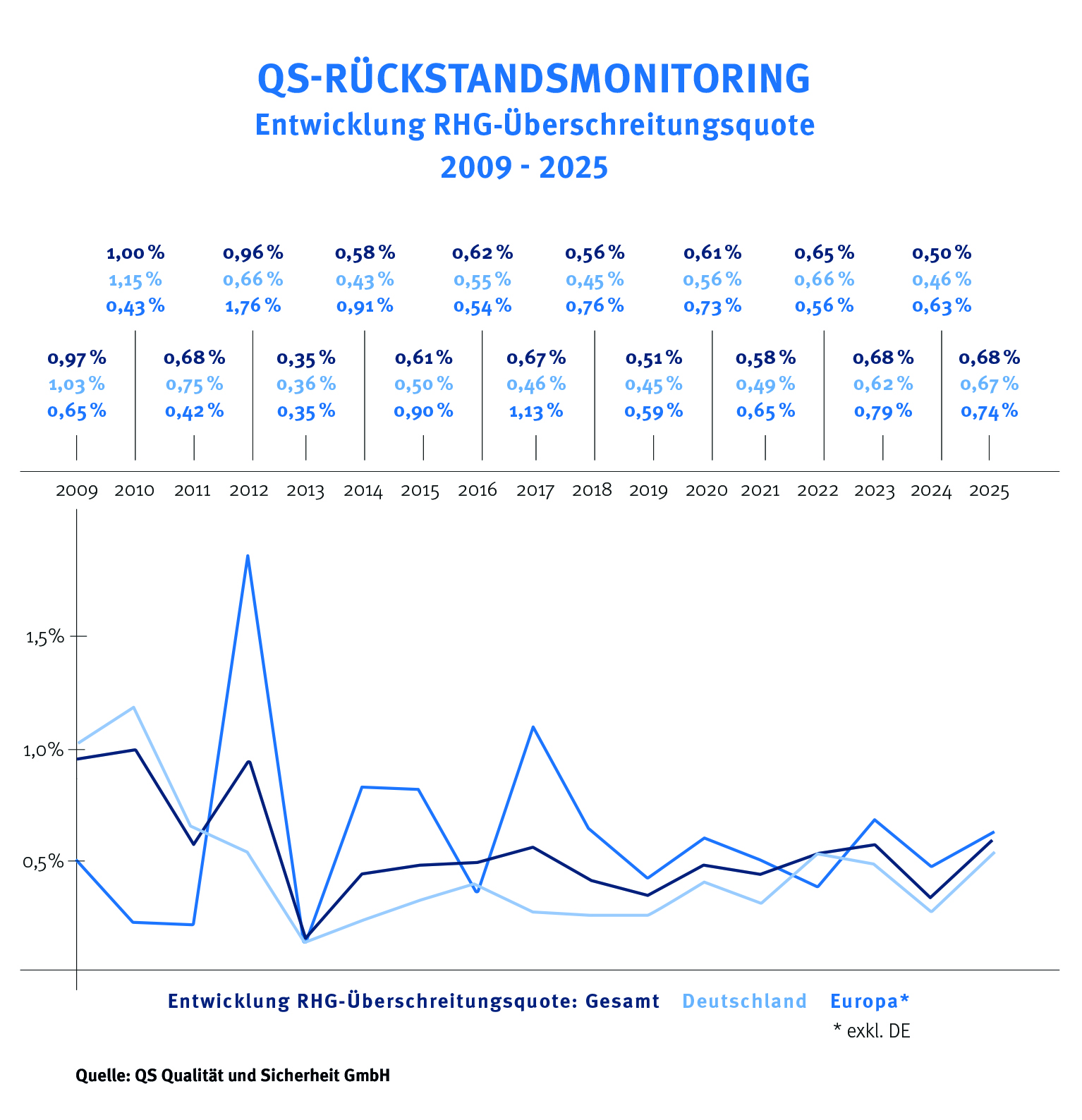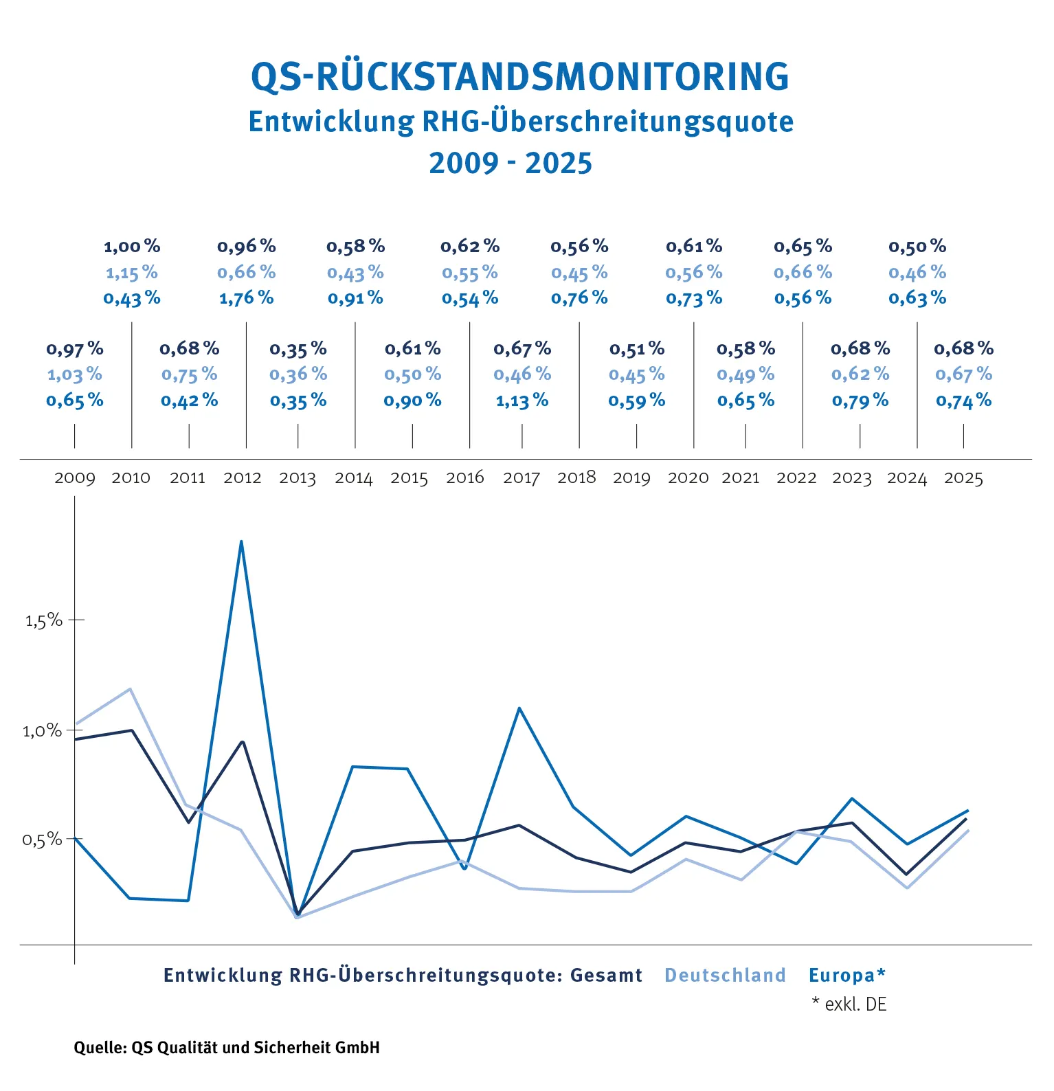 Die RHG-Überschreitungsquote hat sich auf einem Minimum stabilisiert: Seit 2018 liegt die RHG-Quote konstant auf einem niedrigen Niveau von unter 1 Prozent.