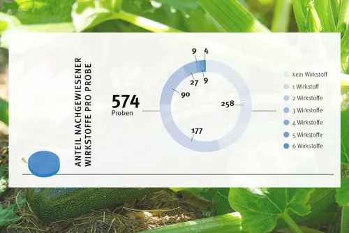 - Proben mit Mehrfachrückständen: 112 / 24,2 % der Proben